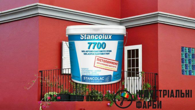 Stancolux 7700 – это высококачественная силиконовая водонепроницаемая высокоэластичная краска, созданная для использования при экстремальных погодных условиях. Используется на любых поверхностях (бетонных, кирпичных, со штукатуркой). Создает на поверхности водонепроницаемую полуматовую защитную пленку, которая заделывает трещины размером до 0,6мм,  обладает отличными свойствами износостойкости, сопротивления УФ-излучению, щелочной и кислотной среде, погодным условиям, препятствует развитию микроорганизмов. Препятствует появлению трещин, обеспечивает отток водяного пара, что позволяет основанию обработанного объекта совершать влагообмен с окружающей средой, что препятствует возникновению вспучиваний на поверхности. Отлично защищает от воздействия углекислого газа, таким образом, защищая бетон от коррозии. Сертифицирована Европейским институтом в качестве внешней защиты промышленных конструкций при экстремальных погодных условиях (башен охлаждения, дымоходов). Краска была сертифицирована благодаря своим качествам износостойкости при температурных изменениях, адгезии, цветостойкости, нерастворимости в воде, сопротивлению карбонизации.